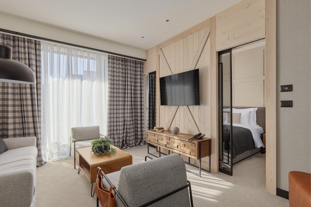 Jednosobni apartman sa balkonom nudi savršen prostor za opuštanje, uz prelijep pogled na planinske vrhove. Idealno za sve koji žele da uživaju u udobnosti i miru, stvarajući prostor za potpuni odmor i povezanost sa prirodom.