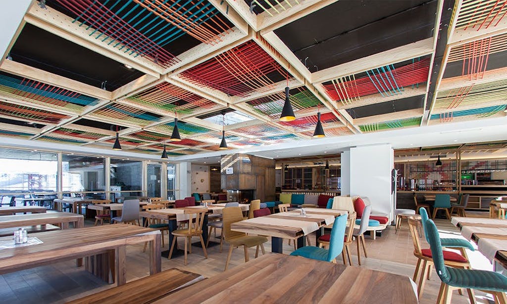 Hotel vam prav tako nudi lično restavracijo in kavarno »Han«, ki sprejme do 65 dobre pijače in jedače željnih pohodnikov. Restavracija in zimski vrt si lastita tudi pogled na smučišče, od koder lahko ob pomirjajočem kaminu in toplem čaju uživate veličasten pogled na mogočno olimpijsko goro.