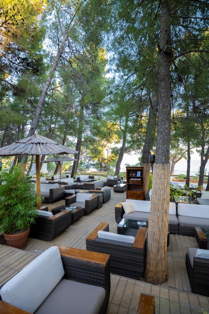 Hotelske sobe su smeštene u odvojenim paviljonima, daleko od buke automobila, okružene mediteranskim rastinjem, što obezbeđuje predivan porodični odmor. Prirodni ambijent ovog hotela obogaćen je raznolikim programom dnevnih i večernjih animacijskih programa za decu i odrasle.